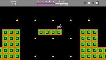 A platformer where you do not have control when the character will jump or dash, he does it on the beat of the song. You can queue the actions, but be careful, if you accumulate too much funkyness this may get out of hand.